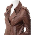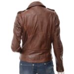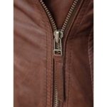 We’ve played around with the silhouette on this to make it slightly slimmer and shorter than usual. The skin used is a super supple sheep aniline hide and the leather jacket features a YKK off centre zip over a double breasted front with wide, notched lapels and a press stud tab at the throat. There are stud epaulettes at the shoulder , articulated seams at the the elbow and zipped gauntlet cuffs. At the waist are a couple of vertical pockets while the interior is fully lined in satin.