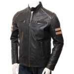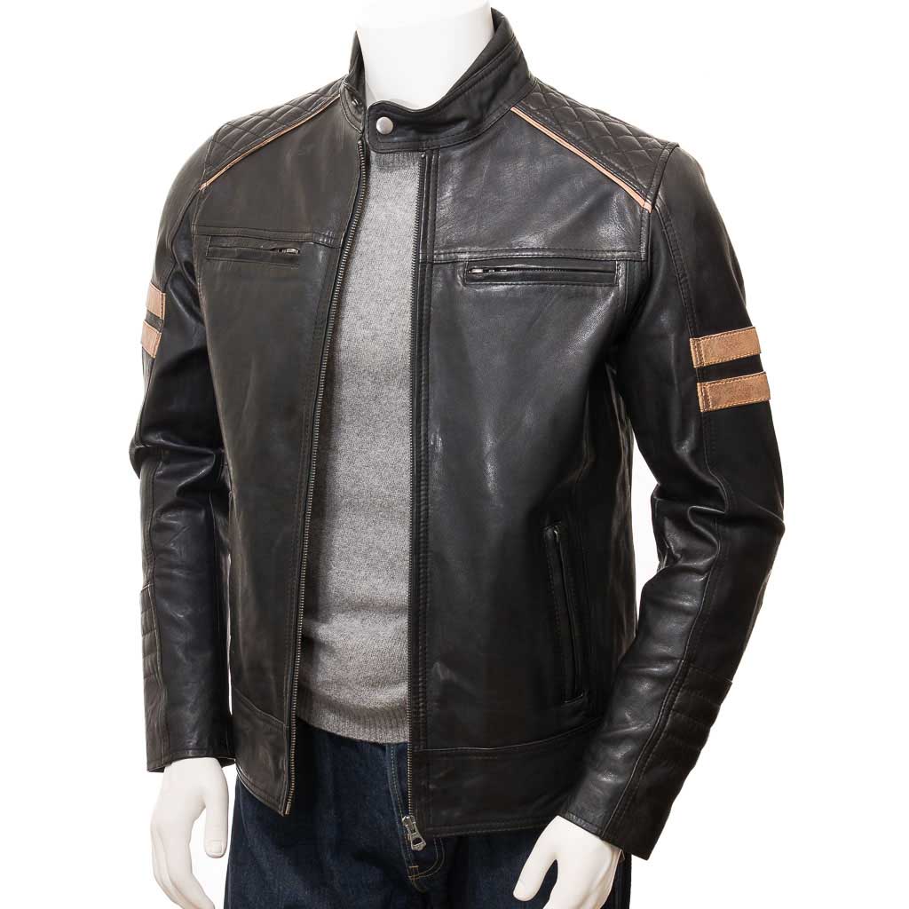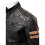 A superb, retro inspired cafe racer leather biker jacket in black.